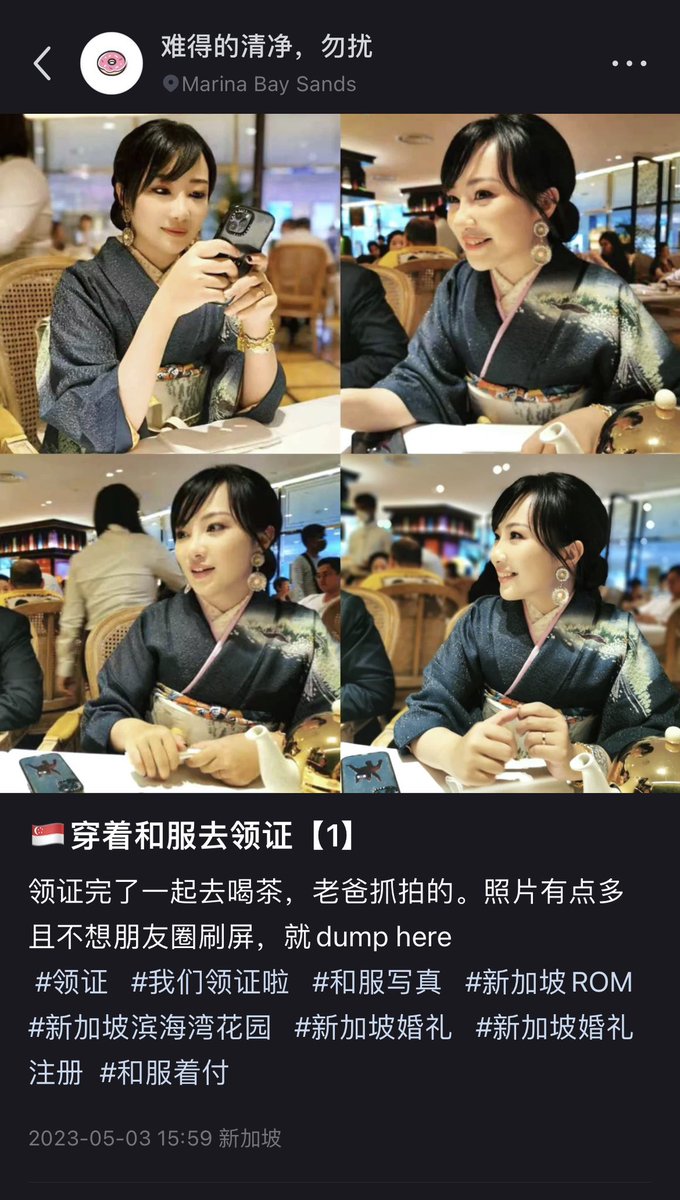 一个著名事件 其他人po过 标题叫《新加坡人穿和服 兔友们纷纷教育要爱中国》原帖女生外公是日本人,所以领证穿和服By:匿名投稿