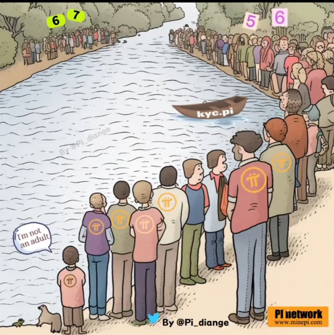 这是一个非常有趣的插图,反映了华人地区KYC的现状,我还在大部队的队列中隔岸相望😅#pinetworkkyc