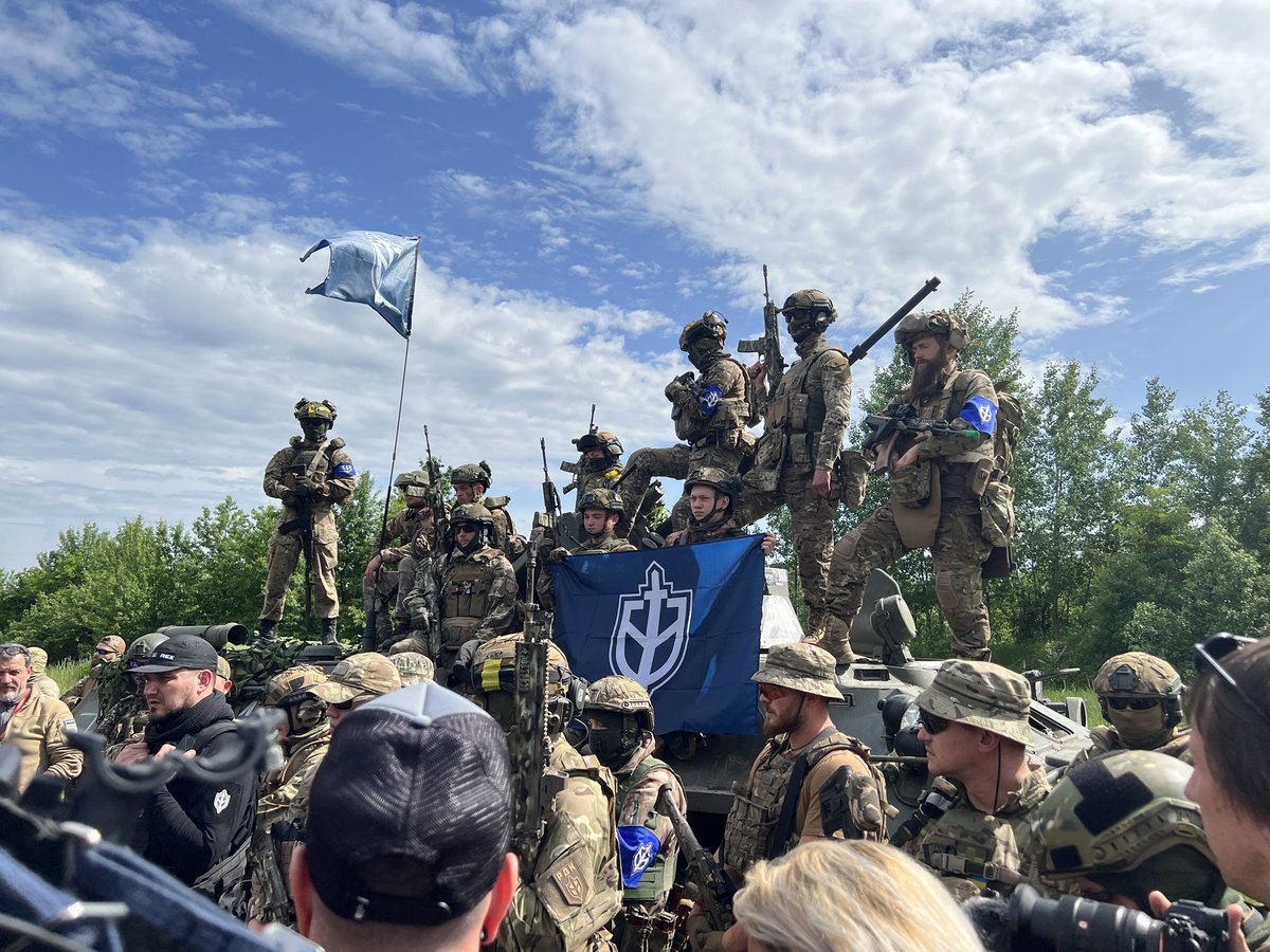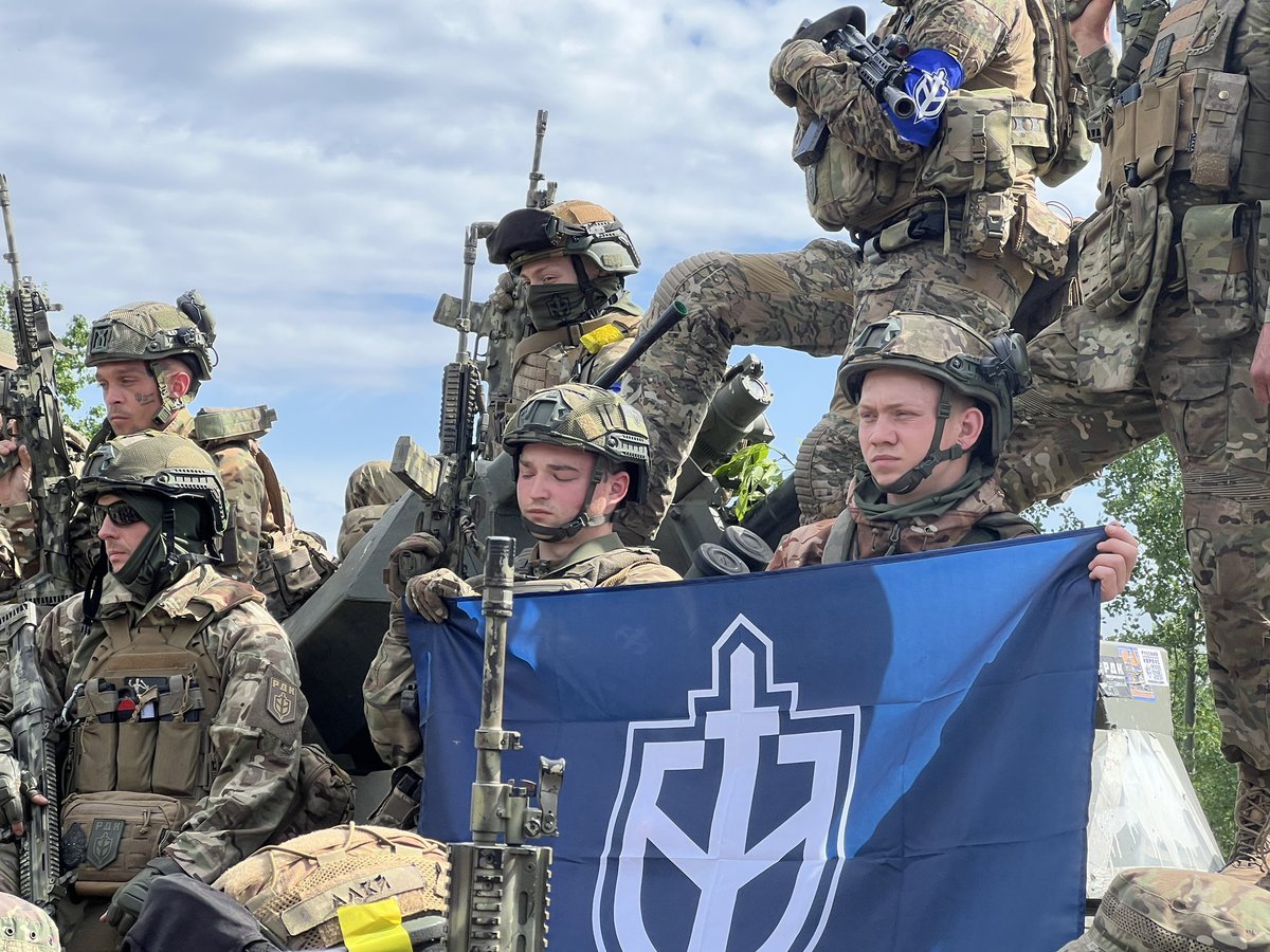 ⭕️ 刚刚从别尔哥罗德闪电战中归来的志愿军和自由俄罗斯军团的“俄罗斯游击队员”。 “任务完成,只有两人受伤,他们正在进入第二阶段工作,普京会感到震惊,他们将结束普京的权和入侵战争”‼️照片来源与记者