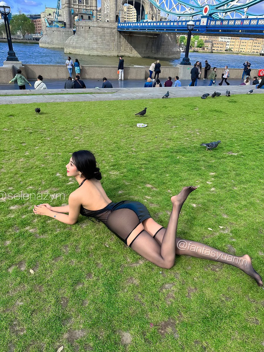 爱伦敦💚众目睽睽之下在伦敦塔桥的草坪晒太阳 好自然好惬意哦😭路人都是欣赏的目光 暴露癖狂喜🥰 #黑丝美臀 #丝袜诱惑