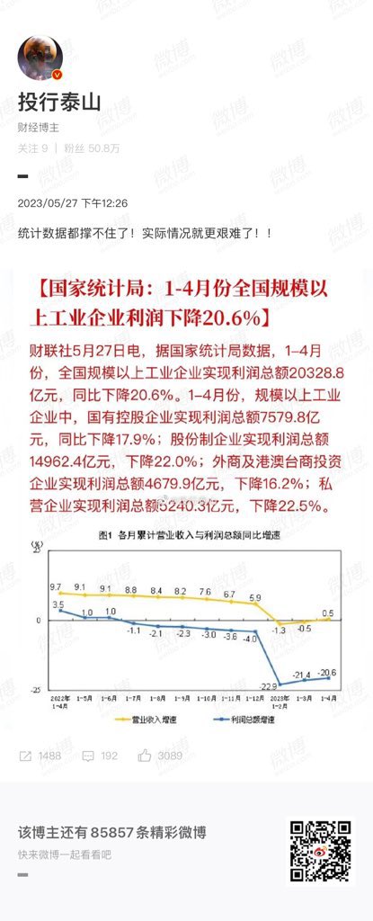 国家统计局:一至四月全国规模以上工业企业利润下降20.6%