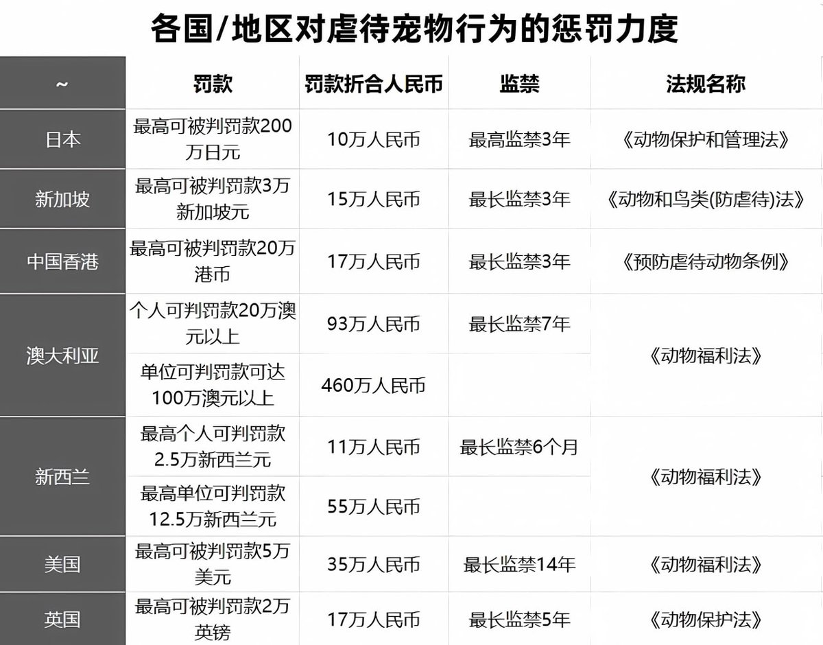 各国对虐待宠物行为的惩罚力度(相关新闻:山东一男子频繁家暴妻子,近日更当面残忍砍杀妻子心爱的小狗。在舆论发酵之后,警方决定拘留该男子12天)