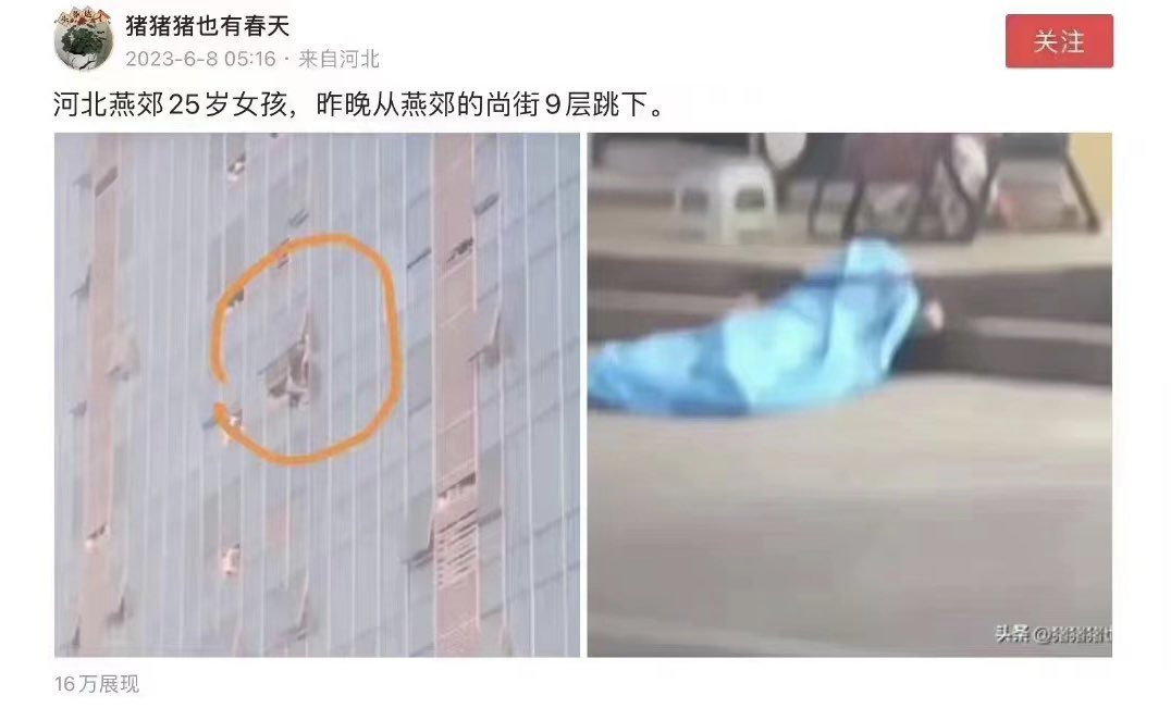 🔥 河北燕郊25岁女孩,昨晚从燕郊的尚街9层跳下。300 万买的房,还清贷款要500 万,现在房子只值150万,还没人买!💥 翻翻CCP治下的中国,只看到两个字:吃人!