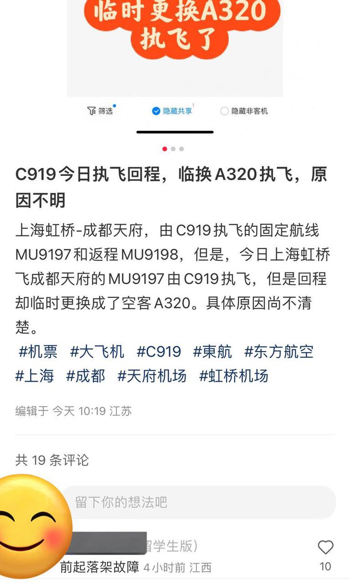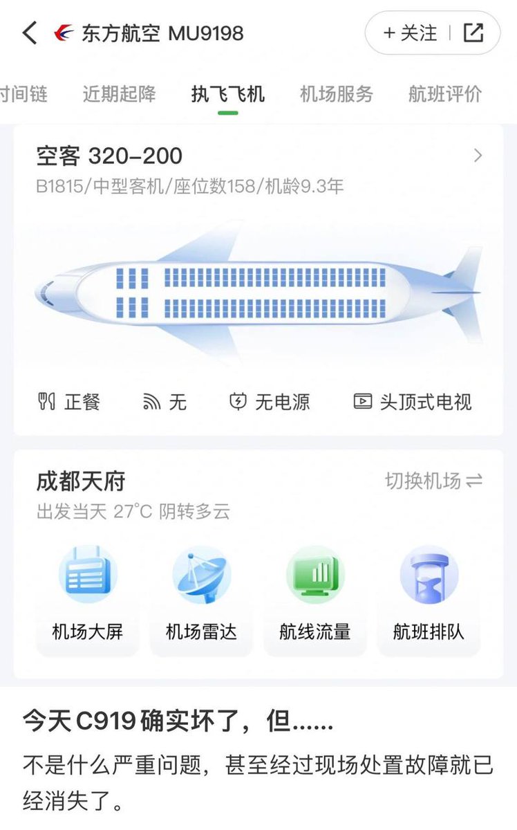 中国组装飞机C919停飞后恢复航班才一个月便再次出事,6月29日班机有去无回,返航回程被迫用空客A320取代。连组装都组不明白么?
