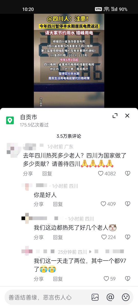 网友投稿在有关四川今夏是否还会限电的新闻下方四川网友对四川限电表达不满