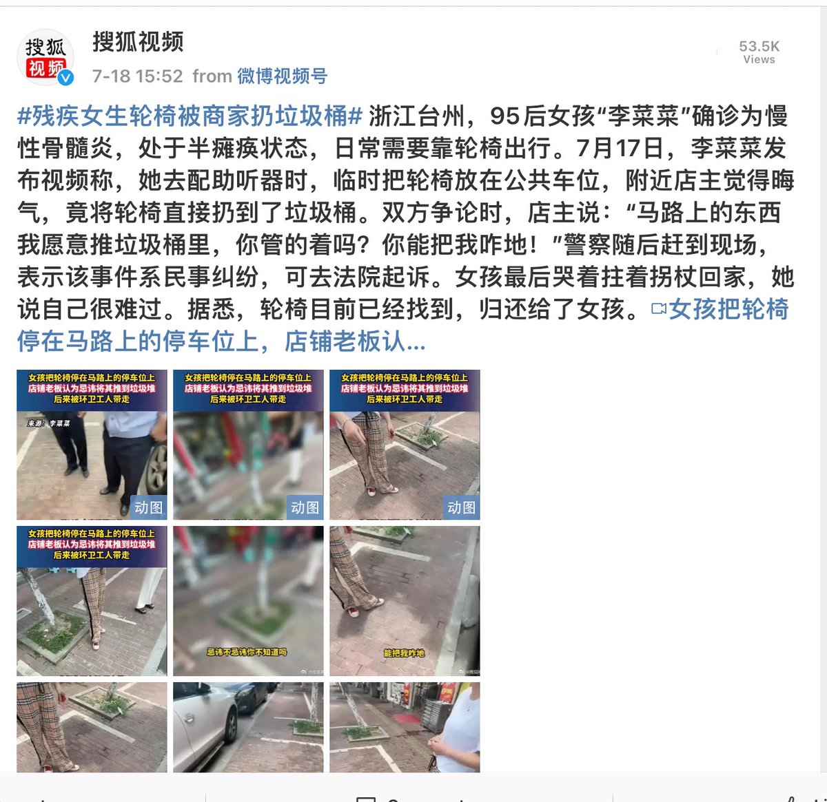 把残疾人的轮椅扔了,这就是完全无意义的恶😡但是在墙国类似的事非常多,就是这种没来头的恶毒。