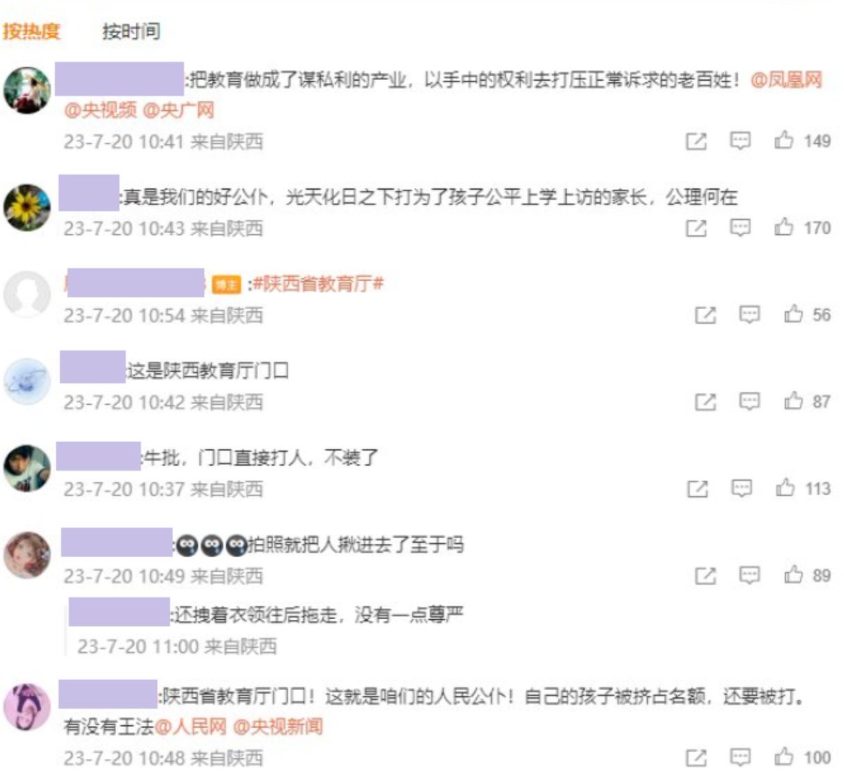 7月20日,西安,省教育厅门口面对家长被暴力执法,网友们群情激愤