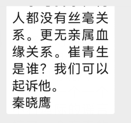 原劉少奇秘書,外交部領事司司長秦力真之子秦曉鷹微信群發文,澄清謠言:“秦剛和坊間所傳之事與我家任何人都沒有絲毫關係。更無親屬血緣關係。崔青生是誰?我們可以起訴他。”