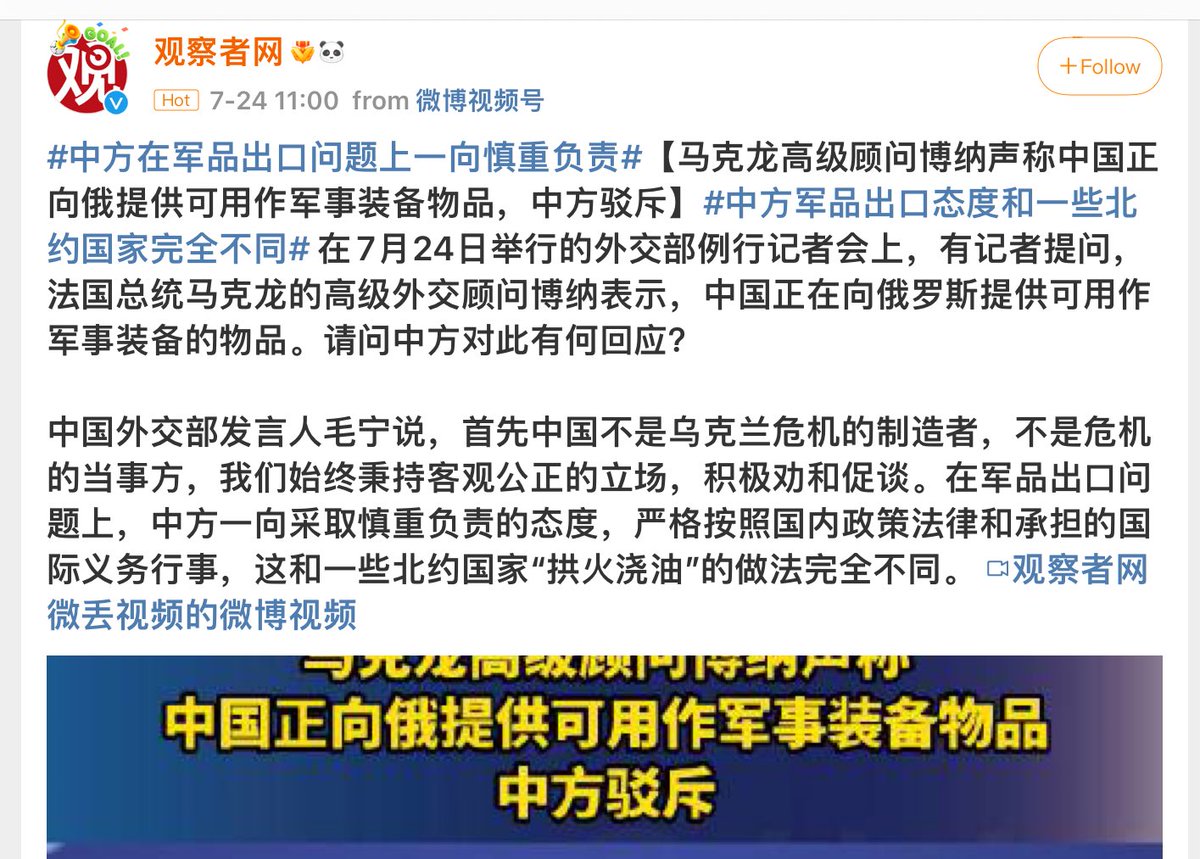 人家问你是还是不是,你说我一向负责任,所以到底有没有提供军品给俄国?