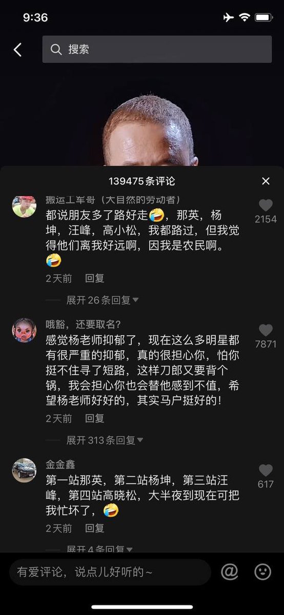 马户(杨坤)的评论区也沦陷了,哈哈有人说他不姓羊,姓马🤣🤣🤣看到那又鸟,马户这些垬养歌手被锤,真是极度舒适啊,老百姓被压抑太久了干了这杯,开心