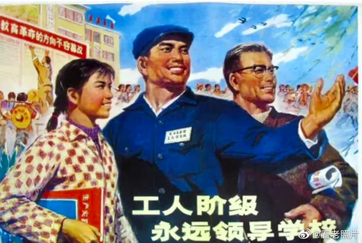 1960年代后期,领导中国教育机构的两种力量:工人阶级和贫下中农。