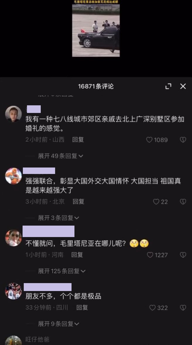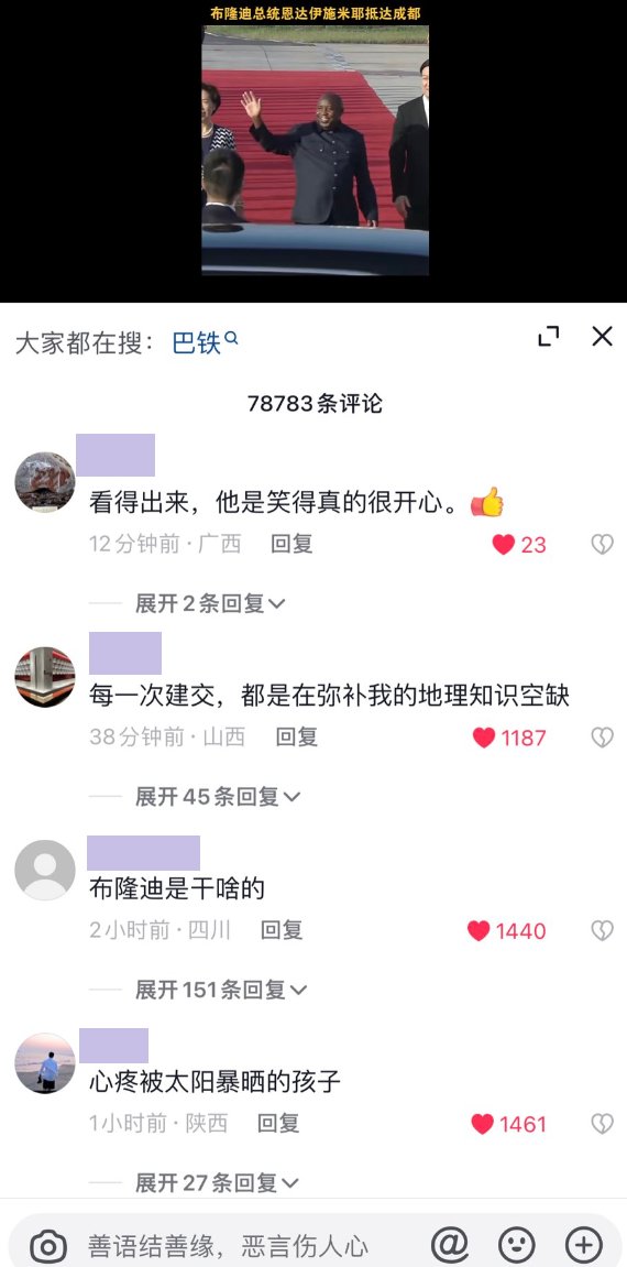 在外国元首抵达成都的视频下方网友们表达自己的不屑