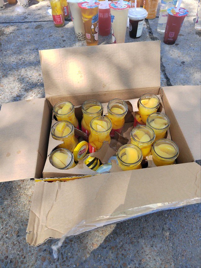 儘管我送的鮮花黃桃罐頭才擺了一天,一點不後悔,值!他們能撤走物品,但撤不走的是人心、民意。
