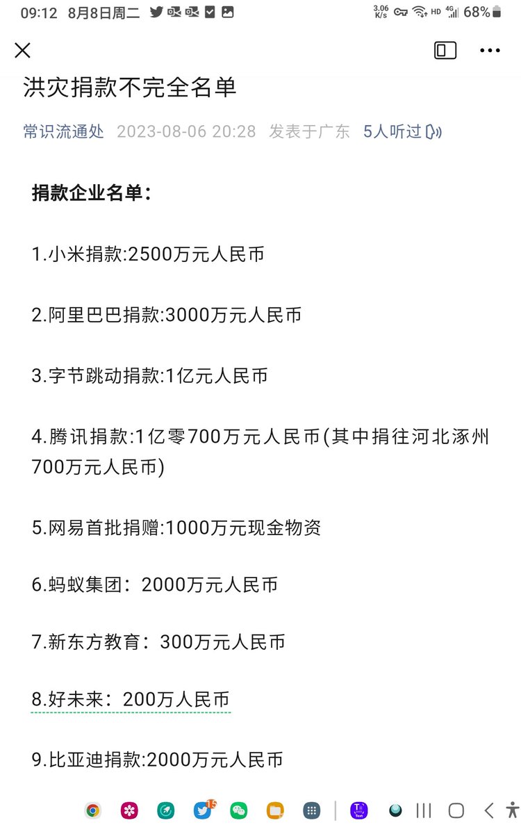 你们不捐,他们不敢不捐!网传【洪灾捐款不完全名单】