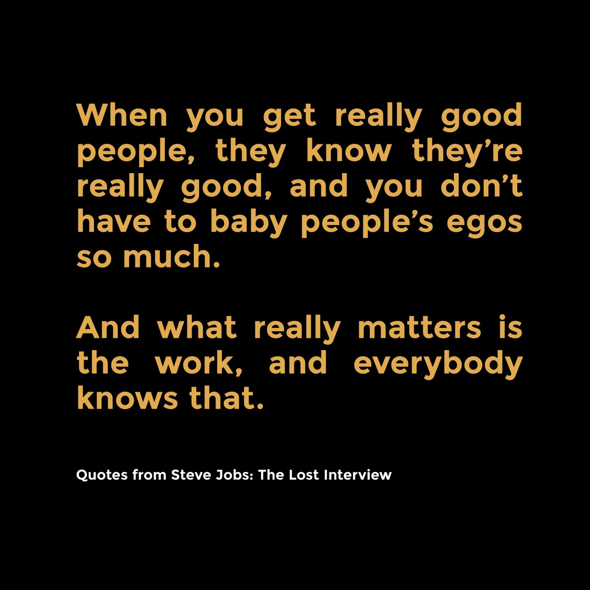 我特别反对用“演绎”的方式翻译,你可以直译、也可以用自己的话复述,但是你不能捏造事实、不能伪造别人的愿意比如网上流传多年的 Steve Jobs 说 “跟聪明人一起工作,最大的好处就是不用考虑他们的自尊”,原话其实如下图这段话出自 1995 年他在 NeXT 时的访谈(Steve Jobs Lost 1995 Interview)