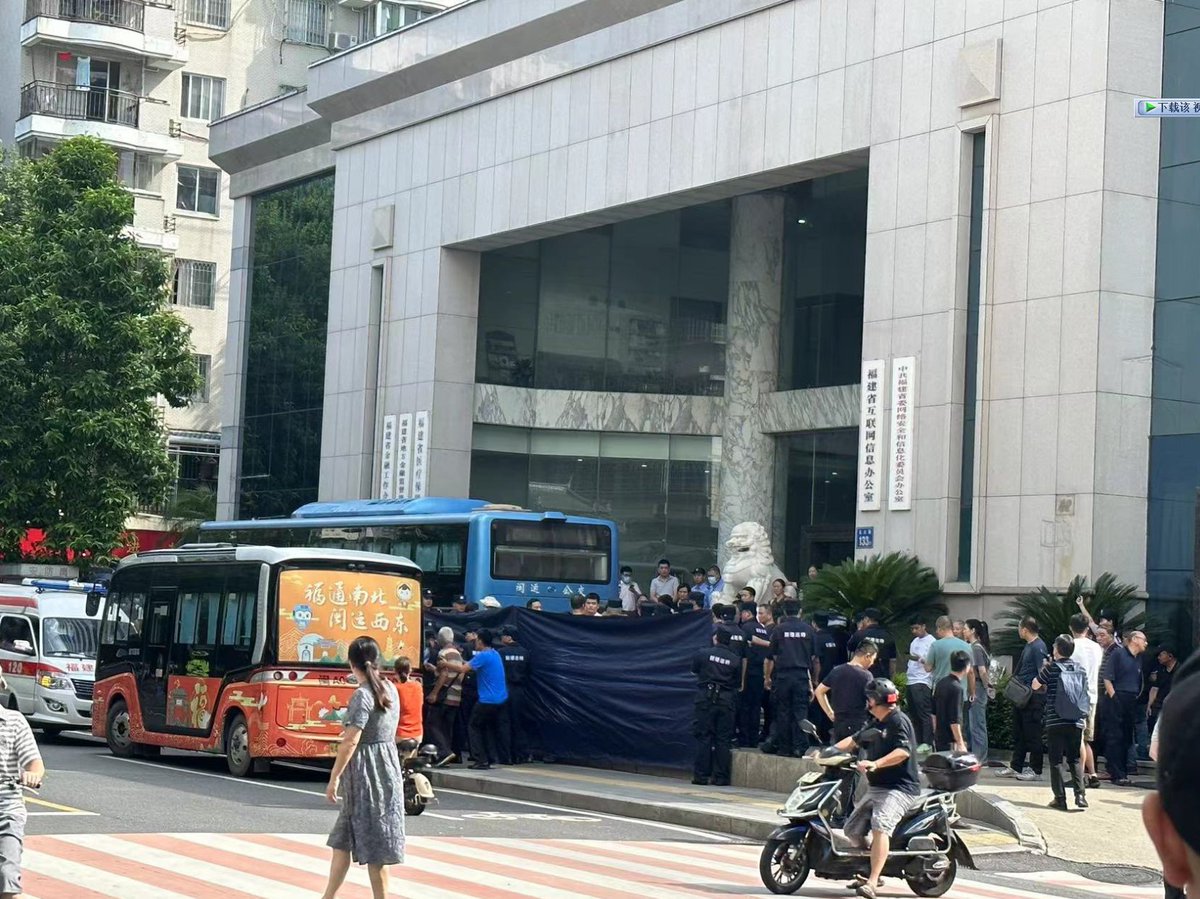 8月21日,福州阳光城暴雷二年,受害者前往省政务大楼维权,现场蒙起黑布。