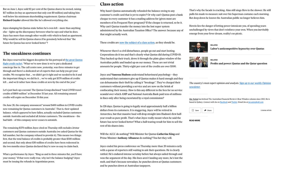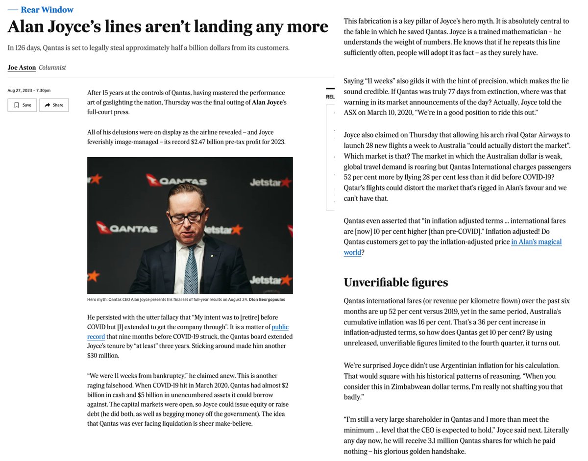 Superb article by AFR that absolutely obliterates Qantas, its dodgy accounting, practices, the whole company #ausbiz #Qantas