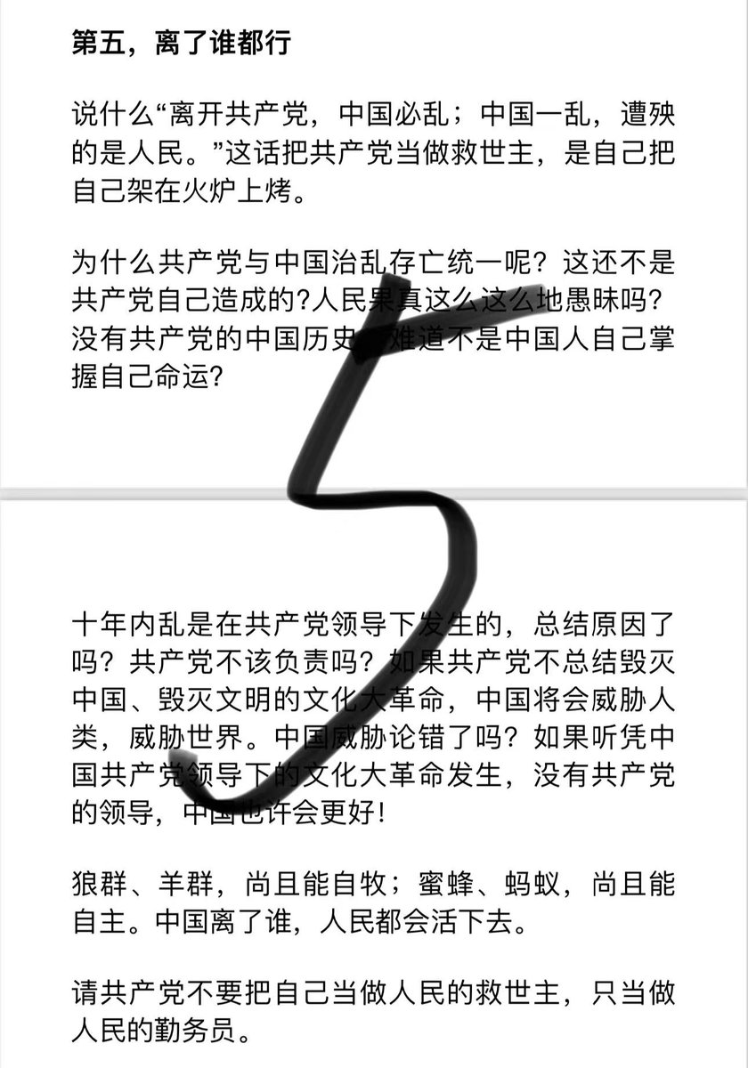 昨天关于资中筠先生的六点建议,因为一次最多上传四张图片,今天把余下的三张图片上传。至于这是否用资先生的大名的托伪之作,大家自辩。朋友传给我的,我只是把它发在这儿,仅此而已。