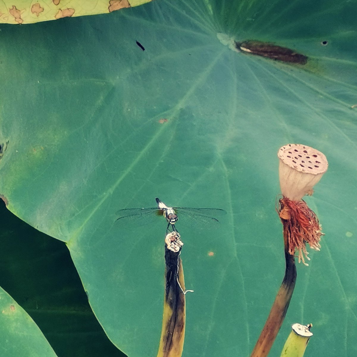 异色灰蜻与莲蓬。