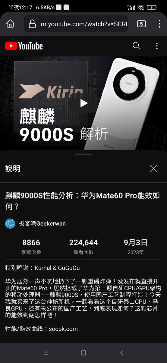 测评和分析华为本次推出的手机芯片的视频遭到删除。据称跟华为无关。