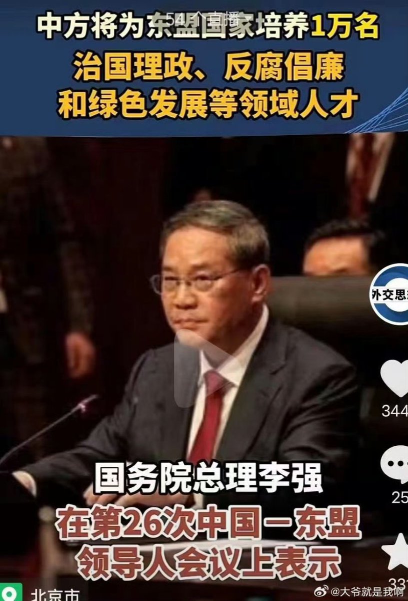 李强:中方将为东盟国家培养1万名治国理政、反腐倡廉和绿色发展等领域人才。