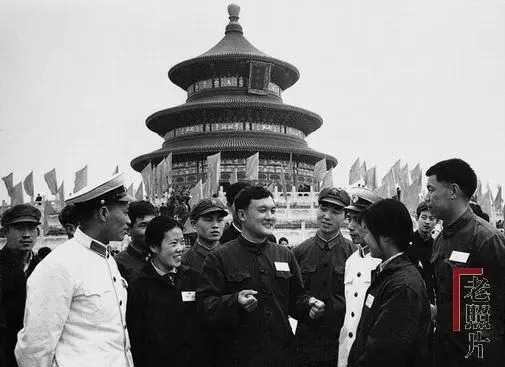 冯克力:1976年北京“五一”游园活动的照片,背景是北京天坛祈年殿,大殿前面有几个人正兴高采烈地聚在一起交谈,照片背面的说明文写道:“在粉碎反革命逆流的斗争中建立功勋的首都工人民兵、人民警察和警卫战士参加游园。他们表示要更紧密地团结战斗,把反击右倾翻案风斗争推向新高 潮,为反修防修,巩固无产阶级专政努力作战。”