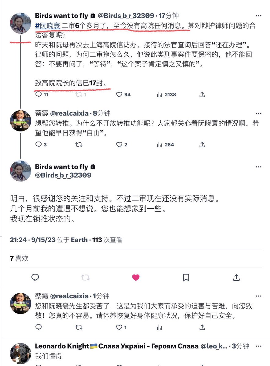 突然发现编程随想—阮晓寰先生的夫人贝震颖女士回网上来了,真是一阵意外的欣喜。待读了贝女士的推文后,禁不住担忧她的境况,深深牵挂被囚禁中的阮先生的情况。贝女士的推特无法直接转推,因而我采用了这种方式,将阮先生贝女士的情况转发给更多关心支持他们的网友们。