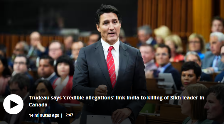 特鲁多指责印度政府参与杀害身为加拿大公民的锡克教领袖#印度 #加拿大 加拿大总理特鲁多表示,加拿大国家安全部门已获得 "可靠 "情报,表明 "印度政府特工 "