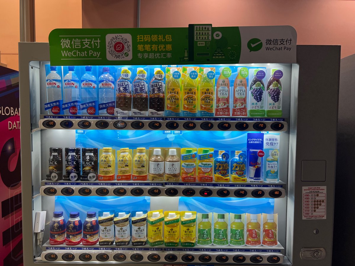 出发前,杭州机场铺天盖地的支付宝广告;抵达大阪后,微信支付自助贩卖机。