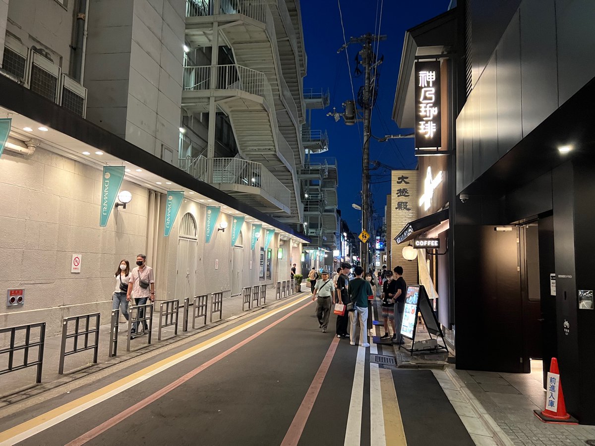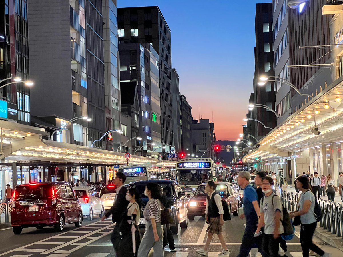 马路虽然狭窄,但却非常适合步行。夜幕降临时可以边过边看着街道尽头的渐变天空。各种品牌云集,从小商品到奢侈品,Apple 京都店也非常大气。随便绕进一个小巷子都有好吃好喝的。京都真的太适合 City Walk 了!