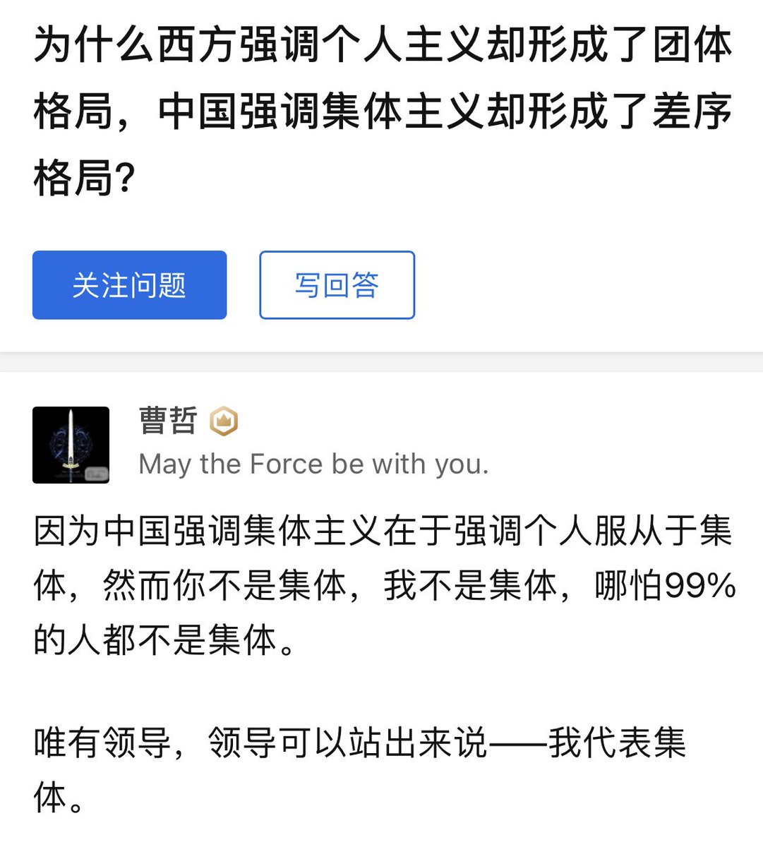 这么看来,“集体主义”不过是经过精心包装的利己主义——利己主义是个人主义的极端形式,反而普通的个人主义才是正常现象。