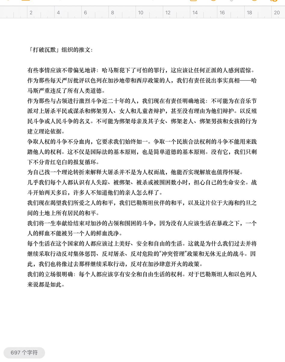 「打破沉默」,通过采集军人证词、网站、讲座、展览、印刷品等形式,揭露以色列的罪错。(见我文章《以色列特别导游:打破沉默》 )「打破沉默」的活动深深刺痛一些以色列人被猛烈攻击并遭起诉。今天已有国际影响。推荐「打破沉默」如下推串。