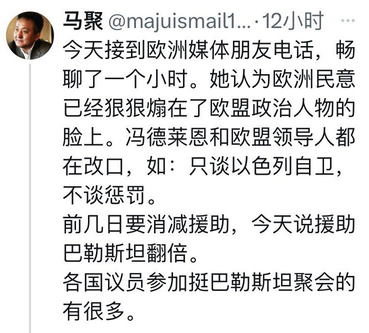 從馬聚的這個推文中,不難看出,馬聚這些哈馬迪的大外宣的主要工作方向就是煽動民意,給政府施壓,來制約以色列。馬聚本人在美國大量的事物就是遊說美國政府、議員、媒體。他的核心就是一個披著學者外衣的反猶太主義者,背後有黑暗的資金支持。這是一個對文明世界危害極大,極其危險的人物!