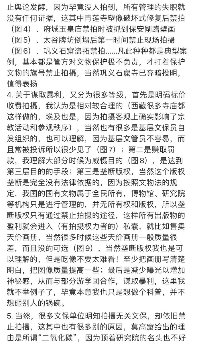 禁止拍照跟保护文物无关,不过是一些单位谋取暴利的手段罢了。