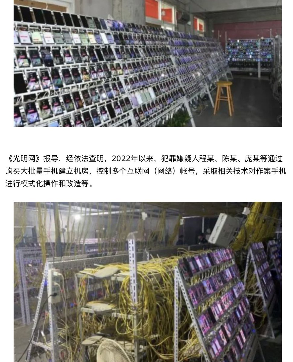 所谓“水军刷人气”震撼场面曝光:26000部手机齐开动安徽宿州破获一起为直播间刷人气的“网络水军”犯罪集团,集团成员共24人,他们在各地租用简陋破旧的便宜房间共13间,摆放超26000余支手机作案。集团成员接到“刷单”、“刷人气”任务后,便让这26000余支手机自动刷屏制造高人气,藉此获利900余万元人民币