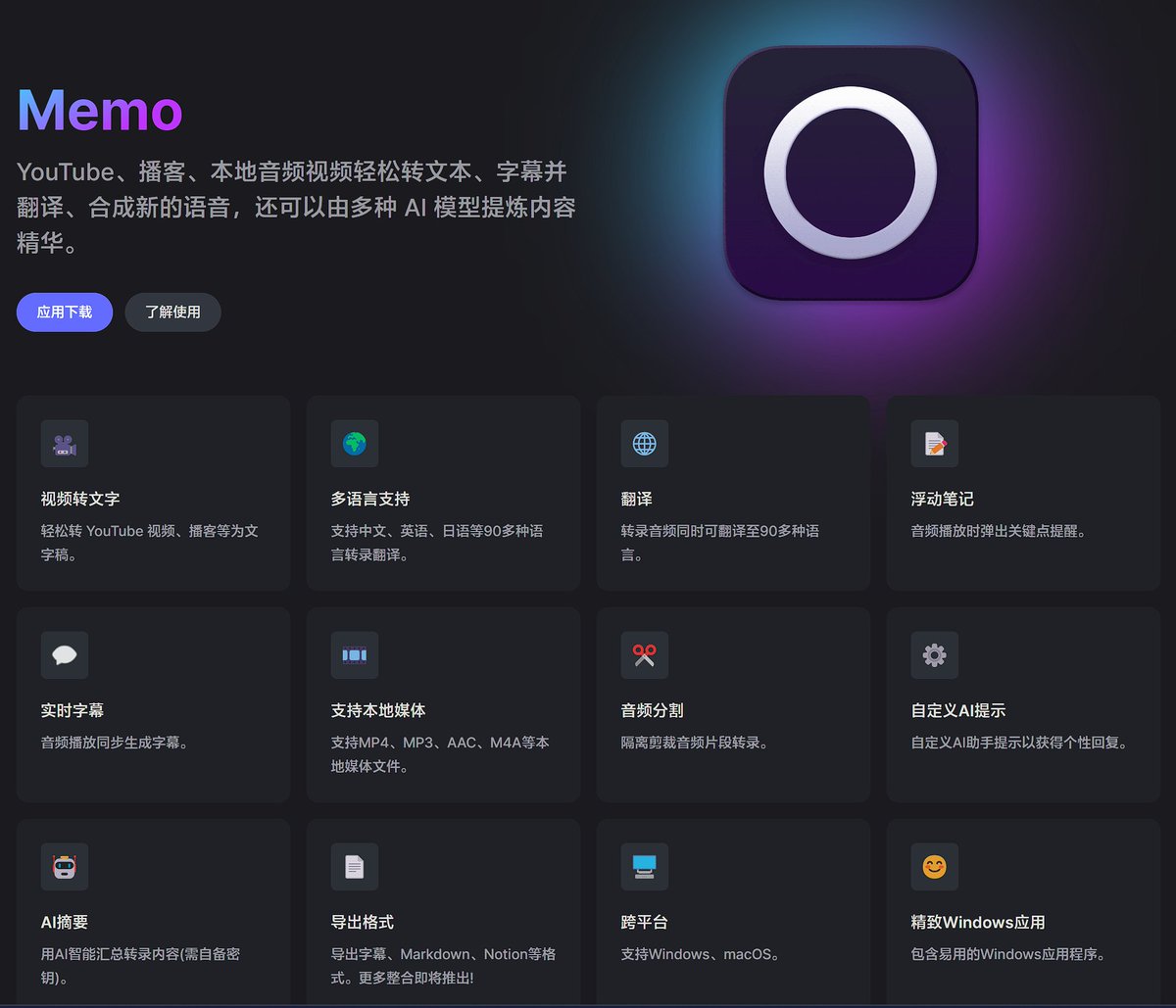 Memo AI 是一款本地的语音转文字工具,支持90种语言转换以及多种格式的导出方式。通过AI运算和GPU加速支持可以将任意视频显示实时字幕。👉转发本条推文并关注开发者,送出5份永久激活码。感谢开发者大力支持和赞助!🎉产品官网