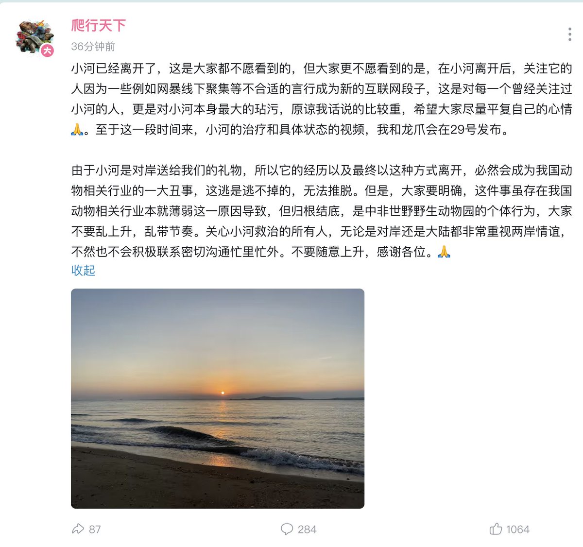 小河最可怜的就是它在台湾时所在的动物园因环境恶劣无法达到法规要求而被迫关闭,只能将它送出,没想到送到中国之后的环境比以前恶劣百倍……