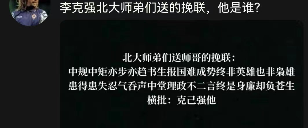 北大师弟们送李克强的挽联,可谓准确总结其做总理10年的经历。