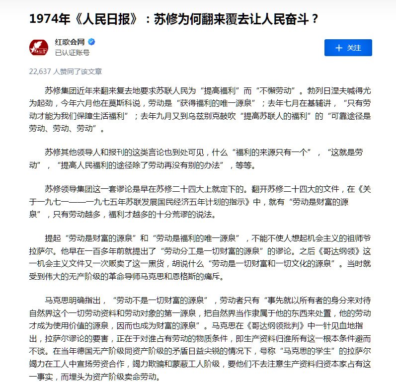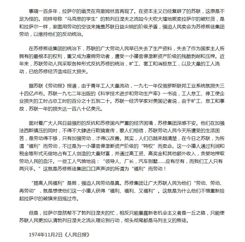 1974年的人民日报:“苏修为何翻来覆去让人民奋斗?” 放现在来看,文章的内容很打脸。