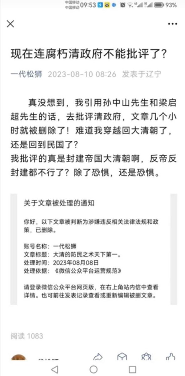 引用一句革命者批评清朝的话,被删帖了。墙国日常。