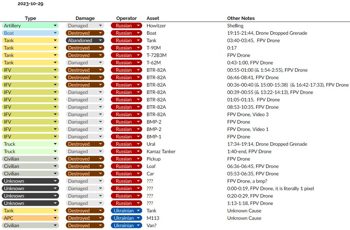 Here are the losses I could identify today … Honorable mentions: Ukraine also lost a VAB, two strykers, and a gvozdika, but they are all backlogs and not current. Also, a ukrainian L118 may have also been destroyed, but evidence is iffy.