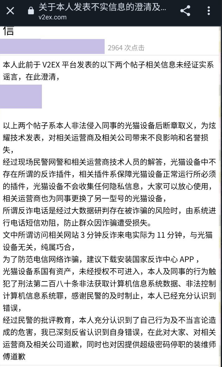 “我们并不会在光猫里装任何读取你隐私的程序,请你相信我们。”“那你们是怎么知道我发的帖呢?”“(⊙o⊙)……呃,这个……我们派出所有一个会算卦的道士!”