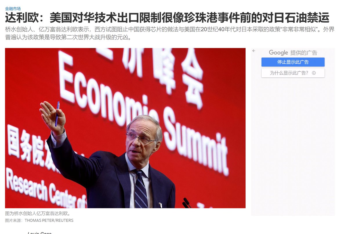 桥水创始人,说美国对华技术出口限制,很像珍珠港事件前对日石油禁运。什么时候中国也来个偷袭珍珠港?