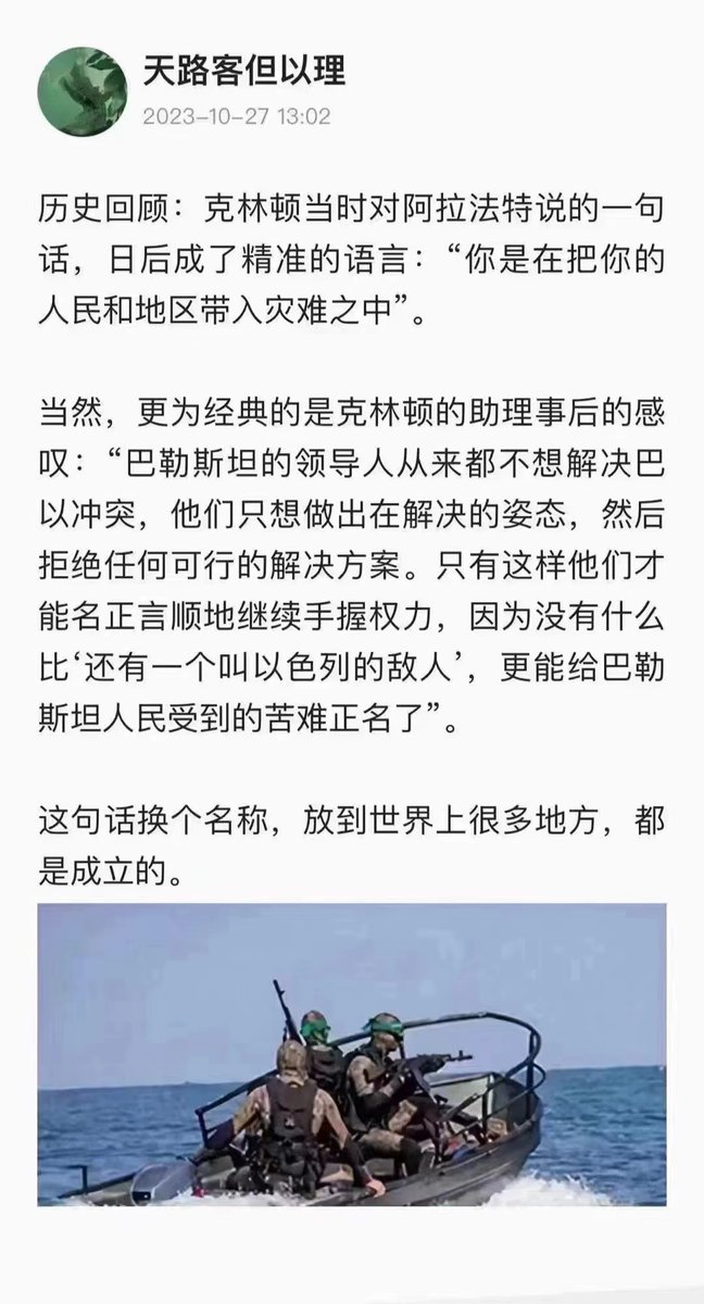 墙国也是。没有敌人也要制造出敌人:阶级斗争、敌对势力……【这句话换个名称,放到世界上很多地方,都 是成立的】克林顿的助理事后感叹:“巴勒斯坦的领导人从来都不想解决巴以冲突,他们只想做出在解决的姿态,然后拒绝任何可行的解决方案。只有这样他们才能名正言顺地继续手握权力……”。