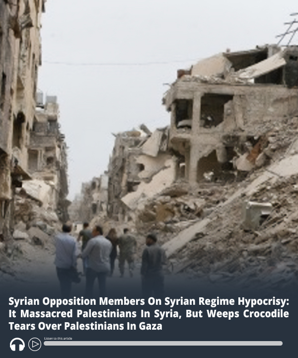 #ICYMI: Syrian Opposition Members On Syrian Regime Hypocrisy: It Massacred Palestinians In #Syria, But Weeps Crocodile Tears Over #Palestinians In #Gaza - Audio of report here #MEMRI