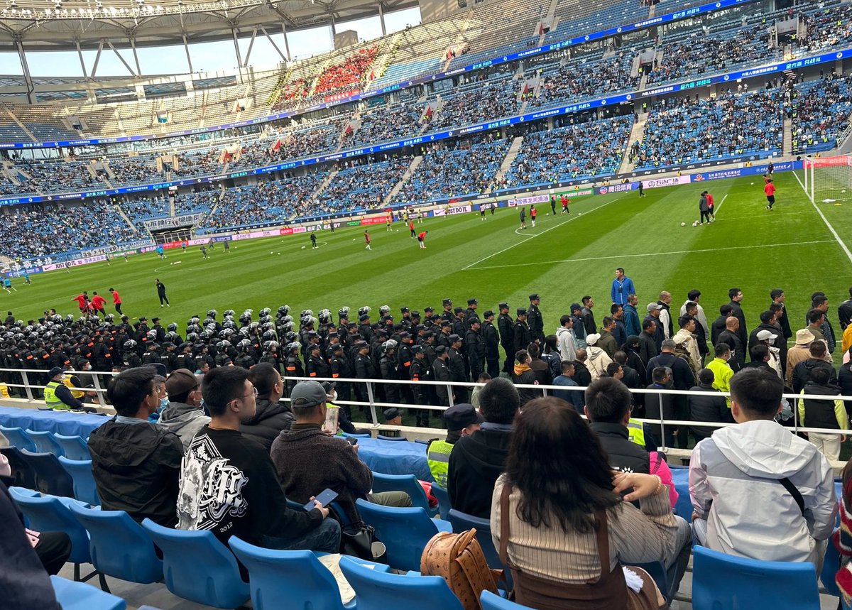 11月4日,大连梭鱼湾足球场中超联赛大连人vs上海海港今天现场突然布置了大量特警和便衣,原因不明。