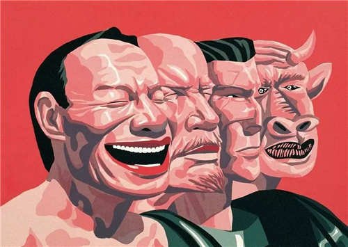 经典回顾之中国画家岳敏君讽刺四大革命导师。