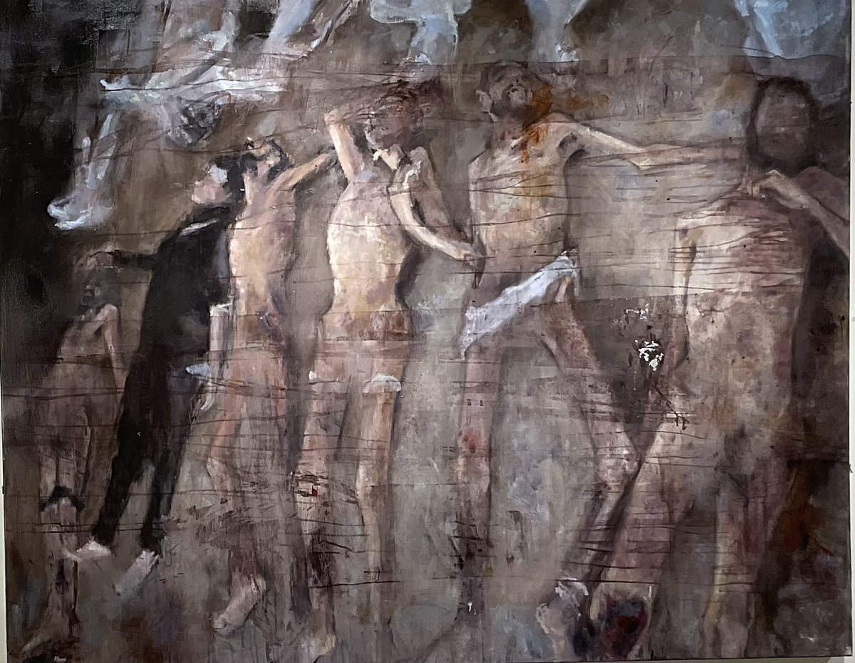Painting(oil/acrylic/canvas). " Rihab Allawi (in black) was my family" said my friend #MazenAlHamada , "she was tortured to death by the #Assad regime. We loved her, and he stole her life."