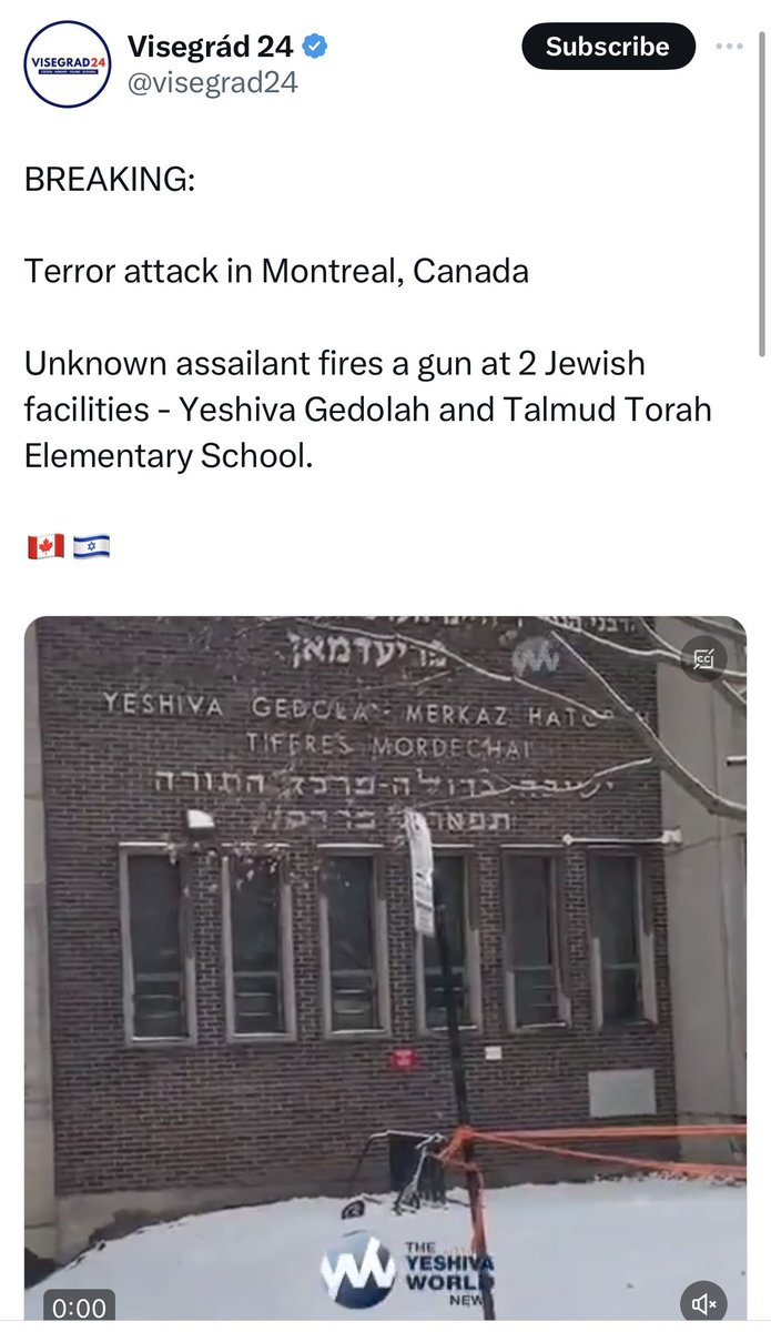 蒙特利尔发生针对犹太人的恐怖袭击,但是当天才有跟恐怖组织有往来的极端分子当众鼓吹消灭以色列。这是你们纵容无底限的言论自由造成的恶果。民主国家应当取缔一切可能宣扬恐怖袭击和极端仇恨言论的集会,如果发生这样的情况,应该像德国人一样强力镇压👊