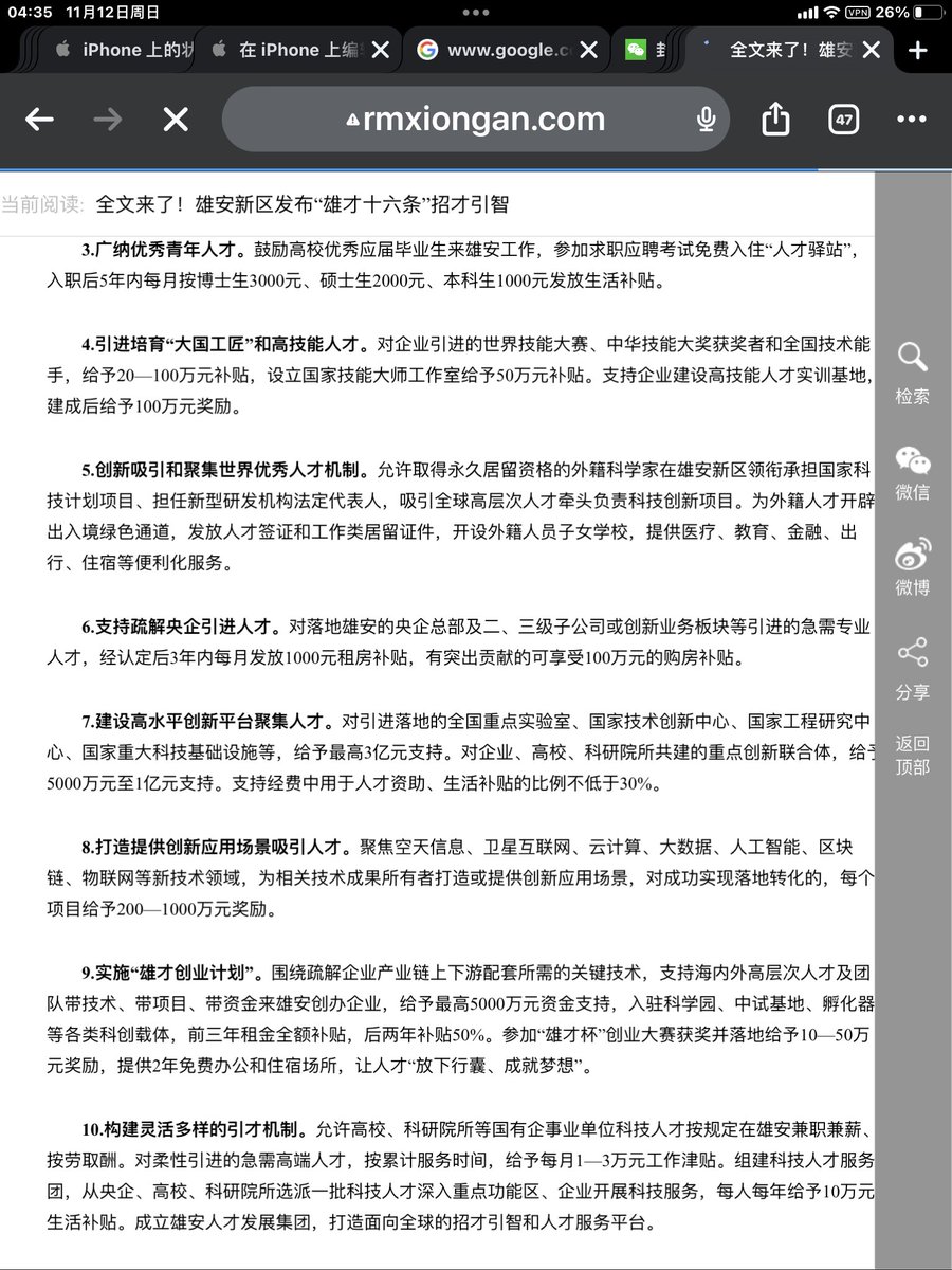 看来真的尿急了,有人肯去吗?广而告之【雄安新区发布“雄才十六条”招才引智】1.积极引进顶尖科学家到雄安工作,给予2000—5000万元科研经费和300万元生活补贴,奖励一套不低于200平方米的住房。2.对高端人才实行“特岗特薪”……经认定后每年按年薪的50%—100%给予奖励。3.~16.……